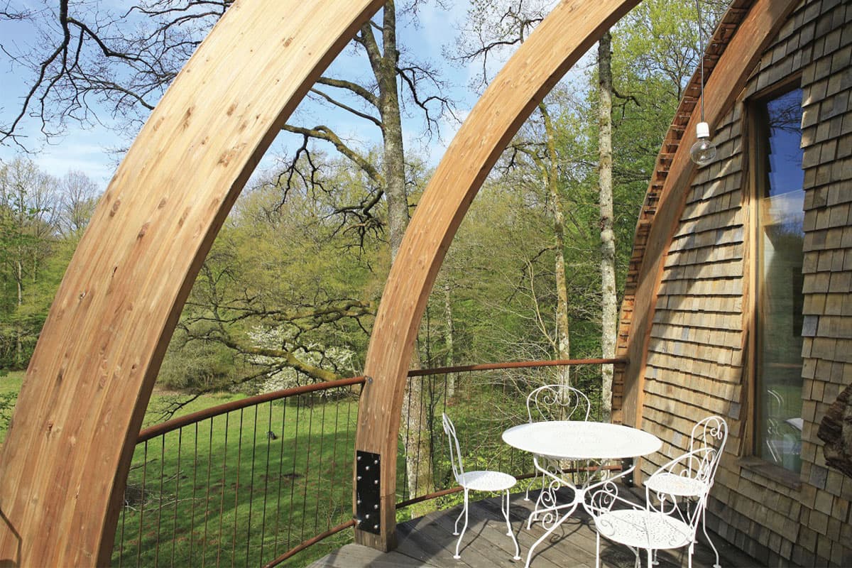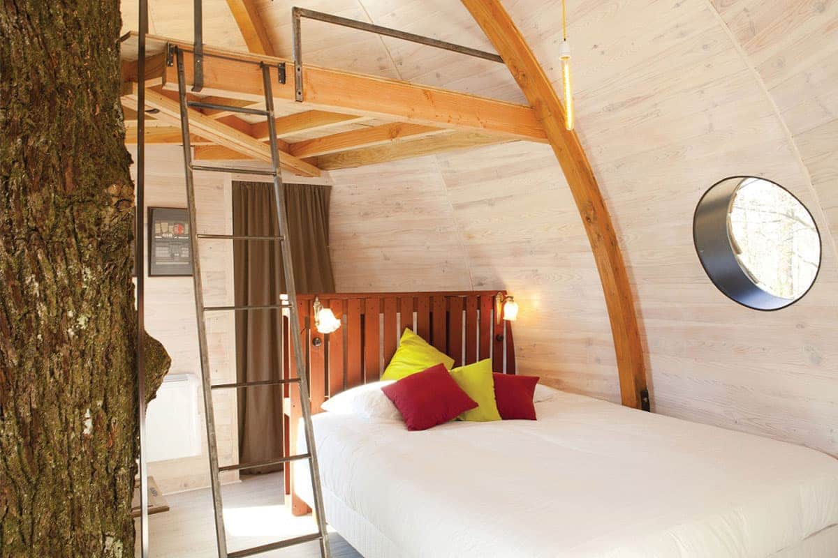 If you wish to take off, just go ahead and lift the walkway leading to the stairs, go to bed and let yourself be carried away by your dreams of outer space. Behind my looks of flying saucer, you’ll soon come to realize that I’m also and mostly an authentic nest in the trees, where you’ll sleep comfortably.